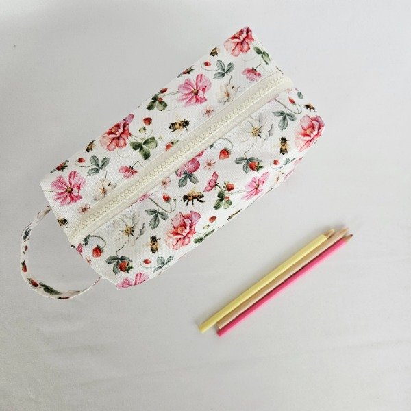 Cartuchera XL, flores blanca y rosa.